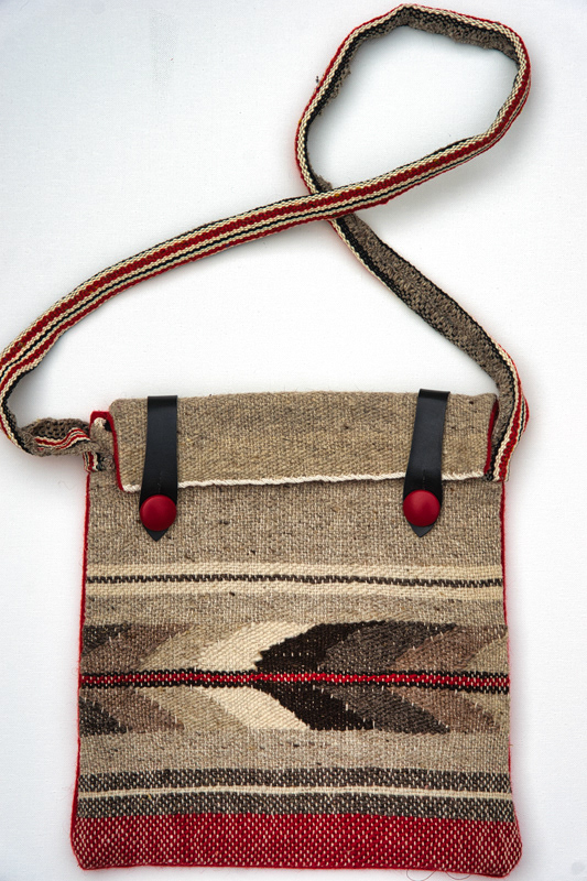 "True Tribe" hand-woven bag made with hand-spun wool, cotton strap.